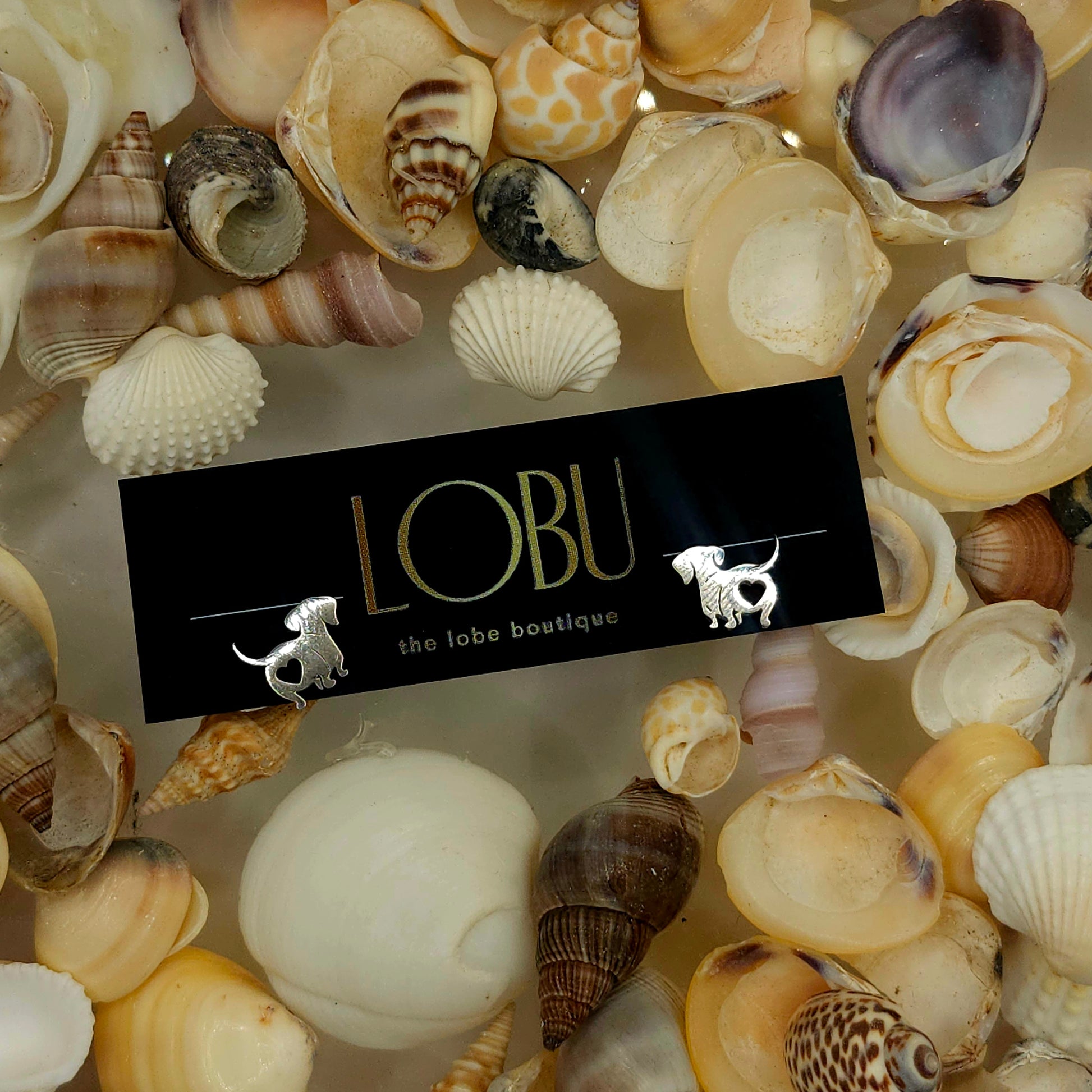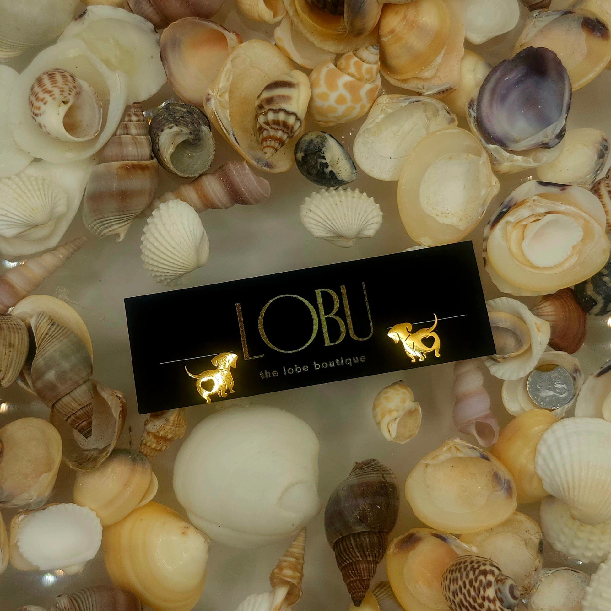 Charming and heartfelt, these gold dog stud earrings feature a sweet cut-out heart detail—perfect for any pet lover who wants to wear their love proudly.