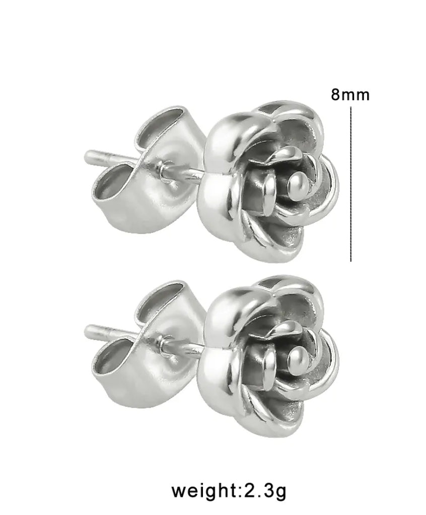 Delicate and timeless, these stainless steel rose stud earrings bring a touch of everyday elegance with their polished petals and lightweight design. Perfect for adding subtle shine to any look.